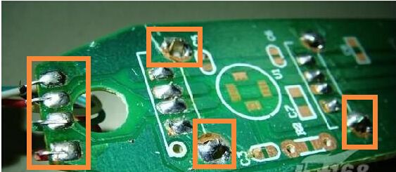 6、焊接點(diǎn)凝固的過程中,切記不要用手觸碰焊接點(diǎn)。焊接點(diǎn)在未完全凝固前,即使有很小的振動也會使焊點(diǎn)變形,引起虛焊。因此,在烙鐵頭撤離之前對焊接件要予以固定,如用鑷子夾持,或烙鐵頭撤離之后快速用嘴吹氣,采取這些做法的目的,就是縮短焊點(diǎn)凝固的時間。