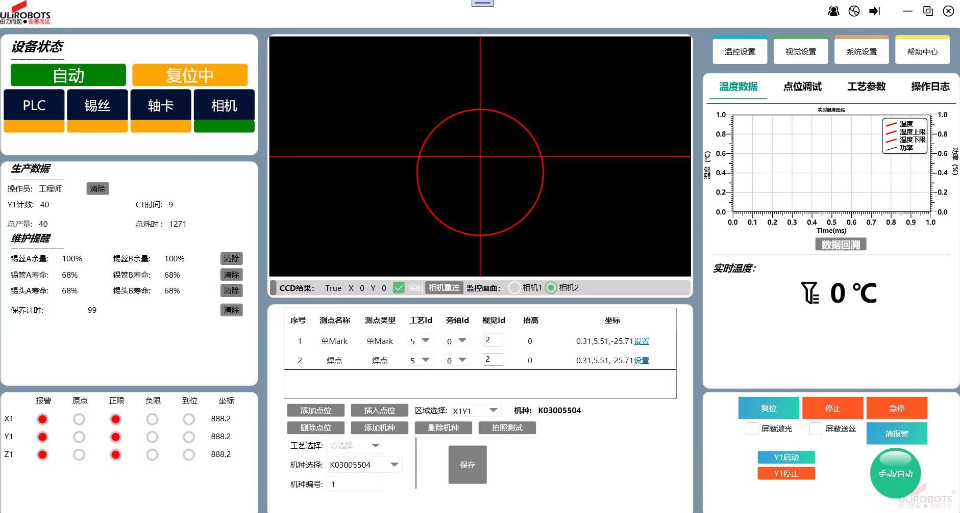 保護(hù)氣體壓力:若壓力低于 0.2MPa,保護(hù)氣體無法形成穩(wěn)定氣幕,空氣易侵入焊接區(qū)域,導(dǎo)致焊點(diǎn)氧化;若壓力高于 0.6MPa,高速氣流會吹散未凝固的焊錫,形成錫珠或焊點(diǎn)變形。行業(yè)標(biāo)準(zhǔn)推薦的保護(hù)氣體壓力范圍為 0.3-0.5MPa,ULiLASER 激光焊錫軟件可通過壓力傳感器實(shí)時監(jiān)測這一參數(shù),當(dāng)壓力偏離預(yù)設(shè)區(qū)間時,軟件會自動暫停焊接并報警,避免批量缺陷。?