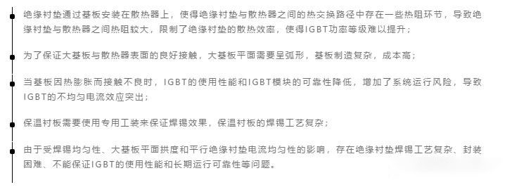 現(xiàn)有的IGBT模塊包裝焊接結(jié)構(gòu)主要采用兩種方法:一種是在基板上包裝絕緣襯墊焊接,然后通過(guò)硅脂與散熱器一起安裝。它以IGBT模塊為單位選擇功率級(jí)別,具有通用性強(qiáng)、可拆卸交換、驅(qū)動(dòng)設(shè)計(jì)簡(jiǎn)單等特點(diǎn)。這降低了對(duì)應(yīng)用程序和開(kāi)發(fā)級(jí)別的要求,但存在以下問(wèn)題: