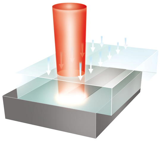 激光塑料焊接原理:激光束穿透上層透光材料,到達下層吸光材料表面,將激光能轉化為熱能,使其表面熔化。同時,熱量從底部傳遞到與其壓接的上層透光工件的接觸面,使其融化,從而實現(xiàn)激光熱熔焊接。這一點在焊接過程中通過各種質量控制方法得到了大量驗證。