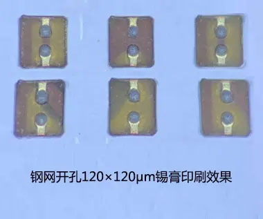 問題2:Mini-LED焊盤尺寸一般小于LED焊盤尺寸φ120um,對(duì)設(shè)備的印刷精度、重復(fù)對(duì)位精度提出了更高的要求。