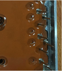 3層銅板+1層PCB板焊接,下面3層銅板(18焊點)+PCB板(18焊點)均采用點焊。